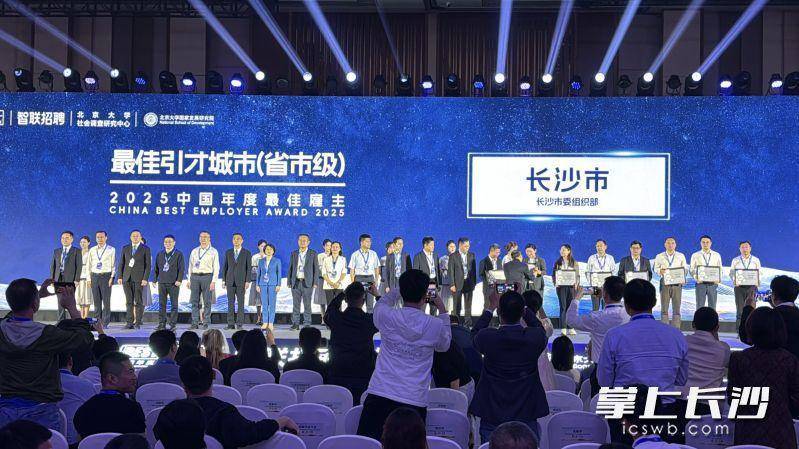 长沙晚报全媒体记者 刘攀12月19日,海南三亚,2025中国年度最佳雇主颁奖盛典公布评选结果,长沙从众多城市中脱颖而出,荣膺“中国年度最佳引才城市”。“中国年度最佳引才城市”评选由北京大学社会调查研究中心、北京大学国家发展研究院、智联招聘等多家专业机构参与组织评审,既有从人才吸引力、人才保留率、人才发展活力等维度进行的大数据分析,又综合考量城市在人才吸引方面的政策、制度、活动、成果等因素。这份覆盖多个维度的评估结果,蕴藏着城市高质量发展的关键密码——以才兴城的智慧实践,让人才成为长沙跃升的重要引擎。长沙的引才之道是什么?这座“中国年度最佳引才城市”为何能吸引各类人才近悦远来?
