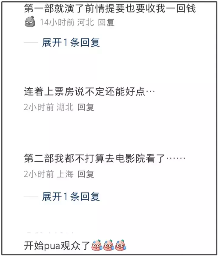 只是从网友态度看,陈可辛要失望了,大家纷纷表示不会再上当了,陈可辛开口催票房,给人一种被威胁的感觉,有人直接回复(下部)爱上不上,就《酱园弄》如今境遇看,下部怕是危了。
