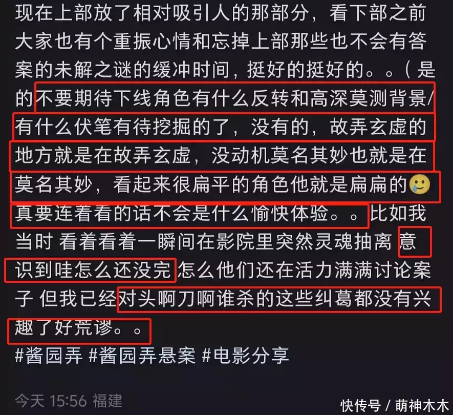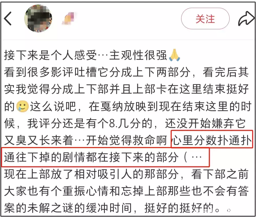 别忘了,戛纳电影节上映的是《酱园弄》完整版,当时就有不少观众给了差评,有位看了戛纳版和重新剪辑版的观众甚至出面表示不要期待下部了。