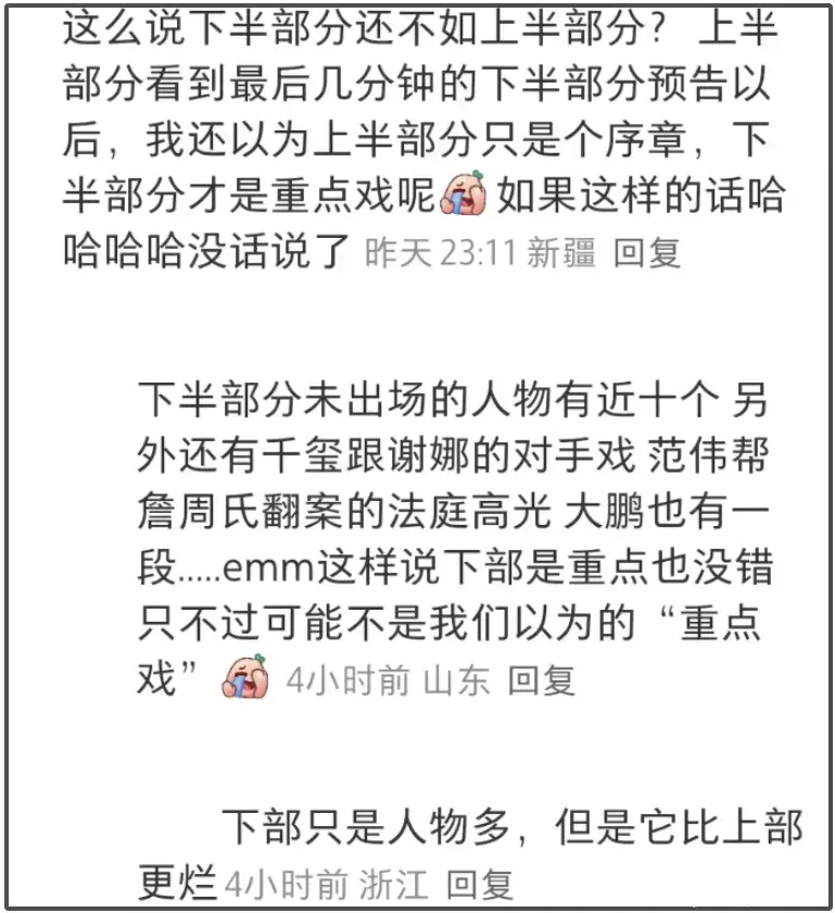 不过总有人抱有希望,想说也许精彩的都在下一部,《酱园弄》口碑崩塌搞不好只是片方决策失误,而不是电影本身糟糕呢?