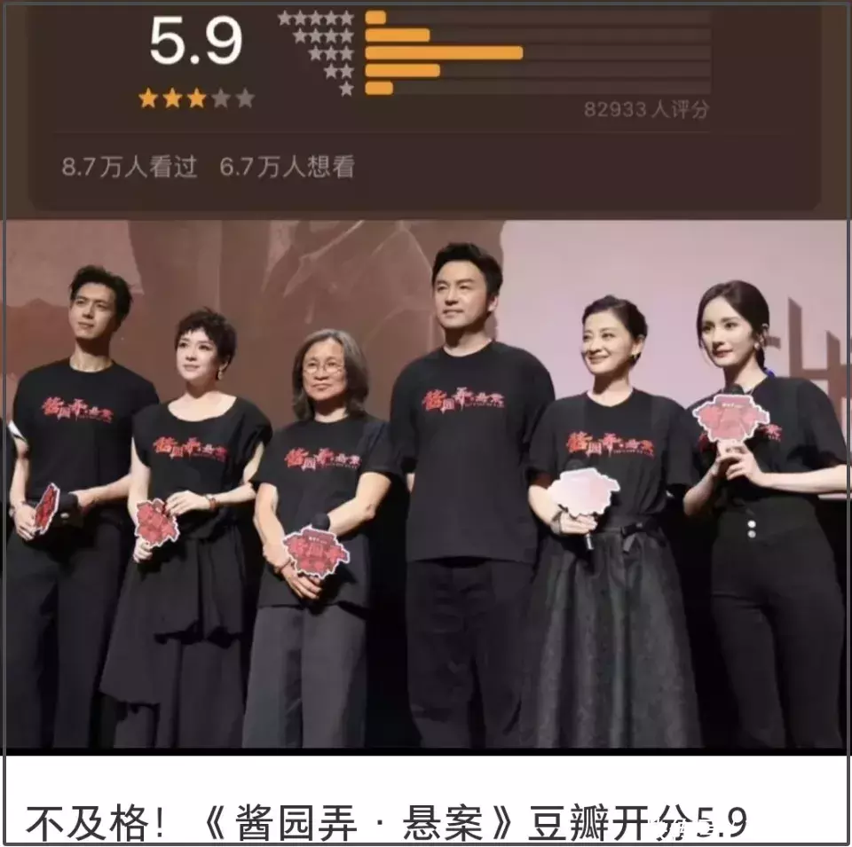 日票房腰斩、评分5.9不及格、预测票房一降再降,电影《酱园弄》可谓是彻底扑街了。